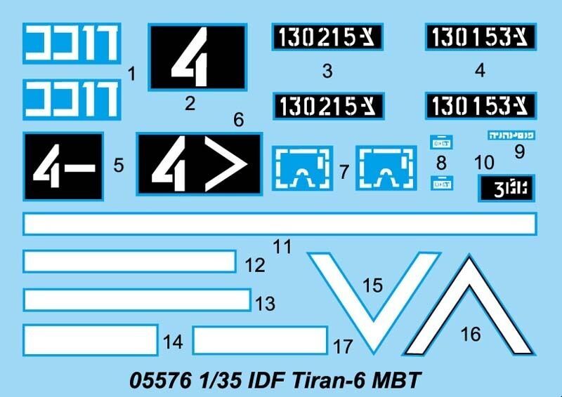 : IDF Tiran-6 is modernization of ex-Syrian T-62. Fitted with laser rangefinder and thermal imaging sight for the gunner. The tank was also fitted with US-made radio. Some Tiran-6 have Blazer" reactive armour tiles fitted to the hull and turret. Tiran-6s also have a flat plate bustle rack added to the turret rear, two stowage bins (one on the right side of the turret and other one on the rear of the turret), larger headlight bracket on the glacis plate and pintle mounts for machine guns on the turret roof in front of each hatch. The 12.7:mm DShK 1938/46 antiaircraft heavy machine gun was replaced by an M1919 Browning light machine gun. The M2 Browning heavy machine gun was mounted on top of the mantlet of the main gun.