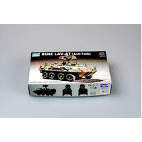 LAV is an eight-wheeled APC used by the USMC? built by General Dynamics Land Systems Canada, based on the Swiss Piranha family? LAV-AT fitted with an Emerson 901A1 TOW 2 ATGM, the same turret that was fitted on the M901 ITV. It is also armed with a pintle mounted M240E1 machine gun. It carries a total of 16 TOW missiles, and 1,000 rounds of 7.62 mm ammunition.
