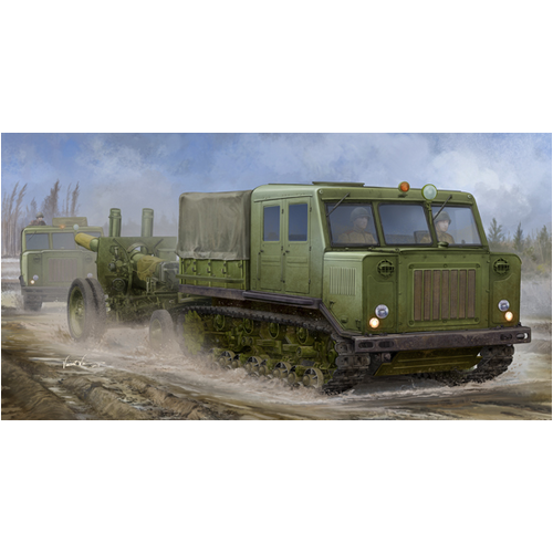 The medium artillery caterpillar AT-S was developed over forty years, and entered service in the Soviet Army in the early fifties, but was replaced by the medium artillery crawler tractor ATS-59 . Besides its use in the Soviet Army, the AT-S was used by all the countries of the former. Warsaw Pact, with the exception of Czechoslovakia, and was exported to countries like China, Egypt, Finland, Syria and Yugoslavia. AT-S can carry a maximum payload of 3000 kg towing trailers or weapons whose weight is 16 000 kg. Conventional weapons include KS-19 anti-aircraft guns to 100 mm howitzers and 152 mm.