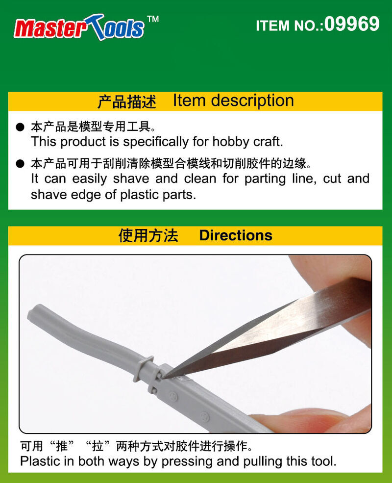 | More Features | : the product can earily shave and clean for parting line , cut and shave edge plastic parts |