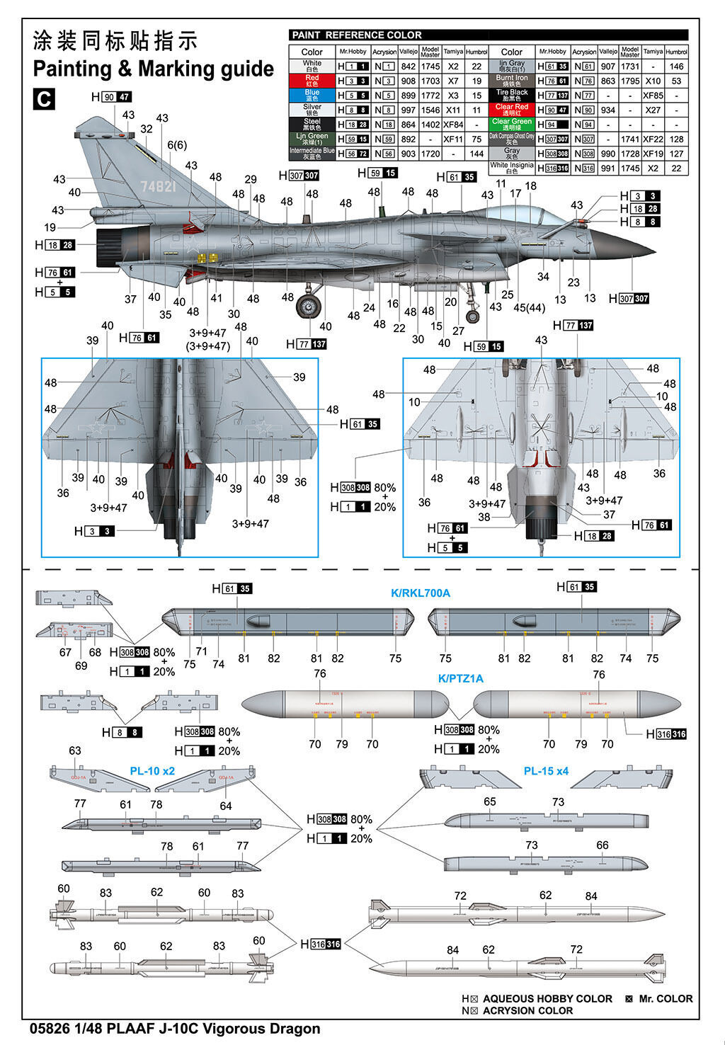 Trumpeter 1/48 PLAAF J-10C Vigorous Dragon Plastic Model Kit [05826]