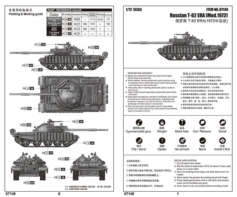 Write A ReviewTrumpeter 1/72 Russian T-62 ERA (Mod.1972) Plastic Model Kit