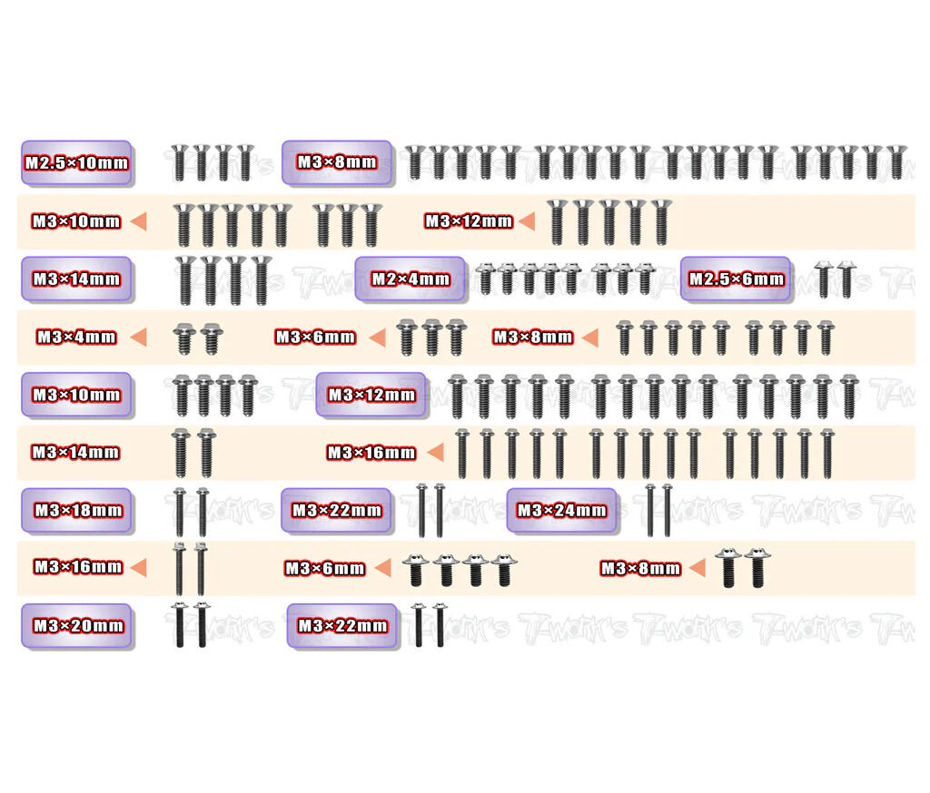 Write A ReviewEnquire about " Tworks 64 titanium screw set 119pcs ( for associated b7/b7d) - tssu-rc10b7"