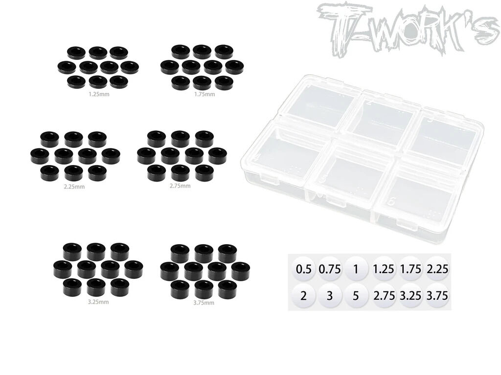 TWORKS Aluminum 3mm Bore Washer Set B ( Black ) 1.25.1.75,2.25,2.75,3.25,3.75mm Each 10pcs.
