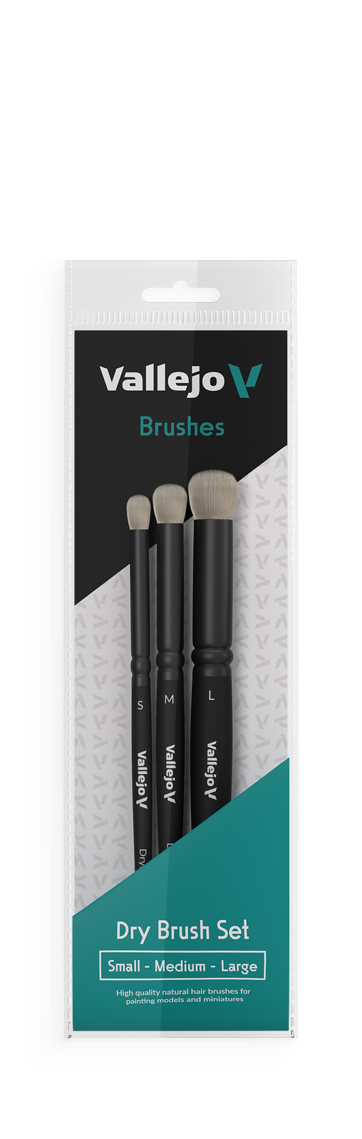 Vallejo Hobby Brushes: Dry Brush Set - Natural Hair (S, M & L)