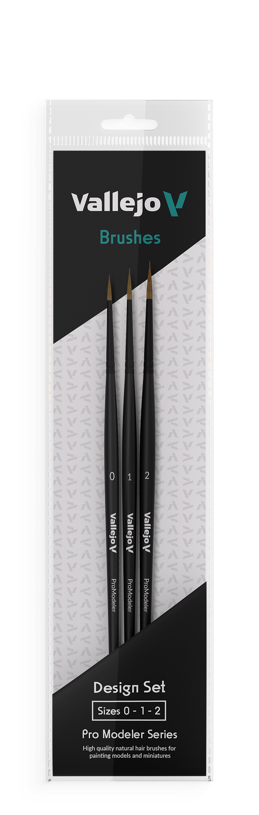 Vallejo Hobby Brushes: Pro Modeler Design Set - Natural Hair (Sizes 0, 1 & 2)