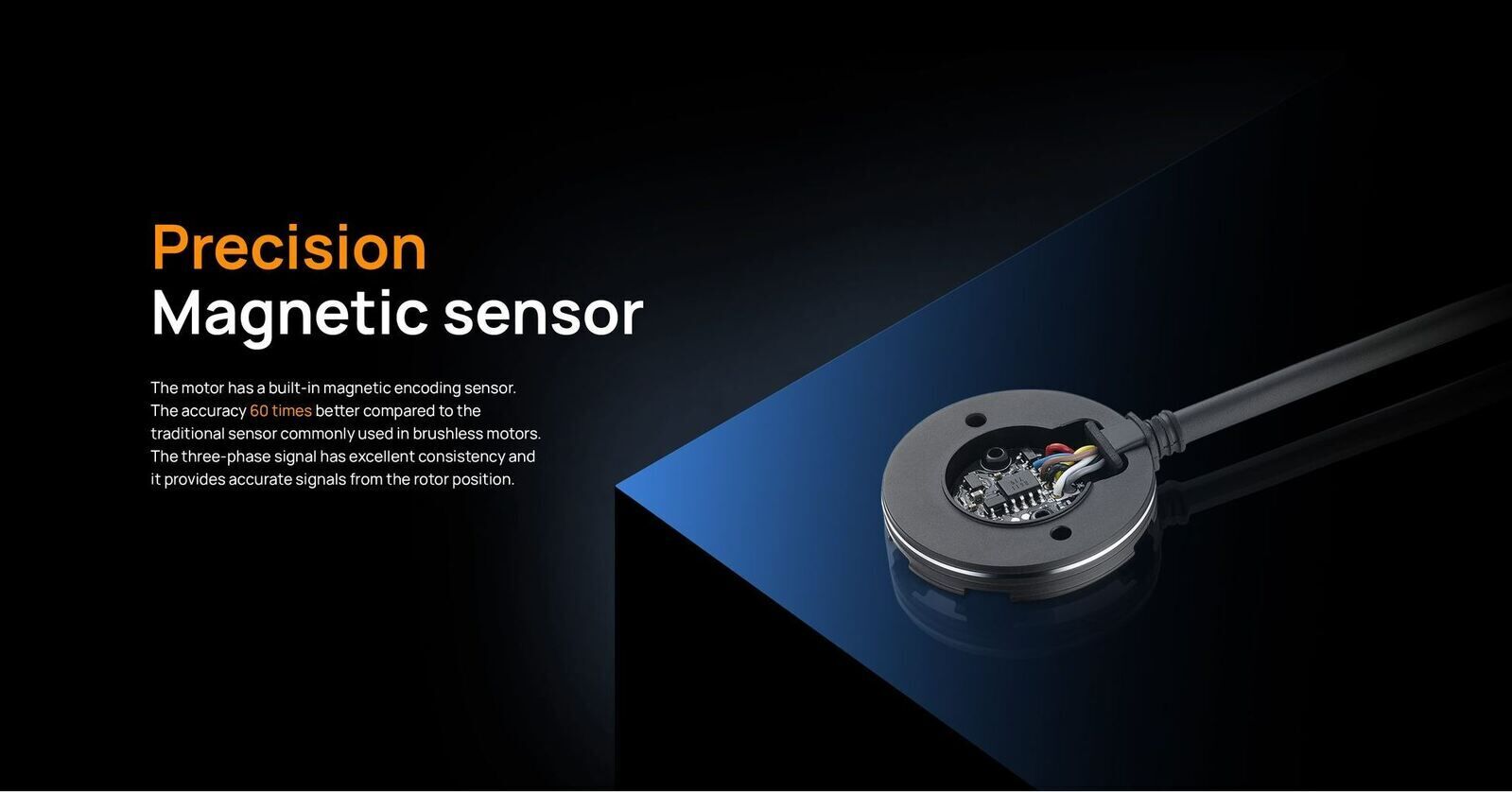 The AXE R3 motor 1) Maximum output power is increased by 106% and is 11% more efficient when compared to the R2 motor. 2) The AXE 4274 R3 is available in both 1700/2000KV options. 3) Built-in magnetic encoding sensor, the accuracy has been increased by 60 times. (HW30401401)