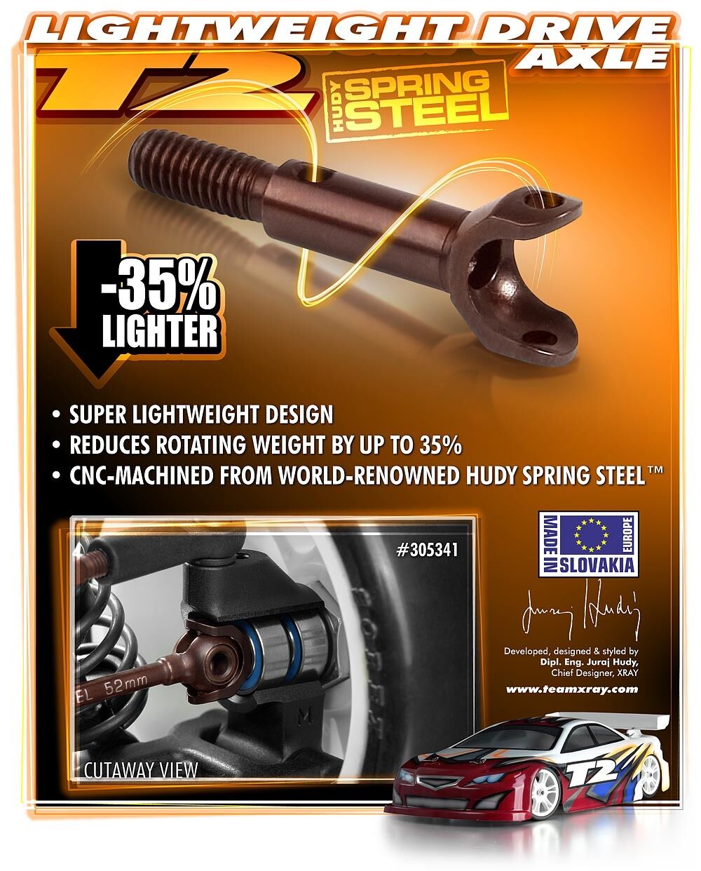 Write A ReviewXRAY DRIVE AXLE - LIGHTWEIGHT - HUDY SPRING STEEL - XY305341