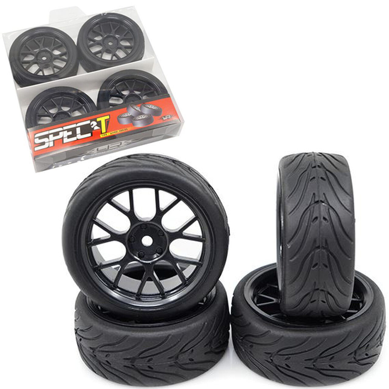 Yeah racing spec t cs wheel offset 3 black w/tire 4pcs for 1/10 touring - wl-0109