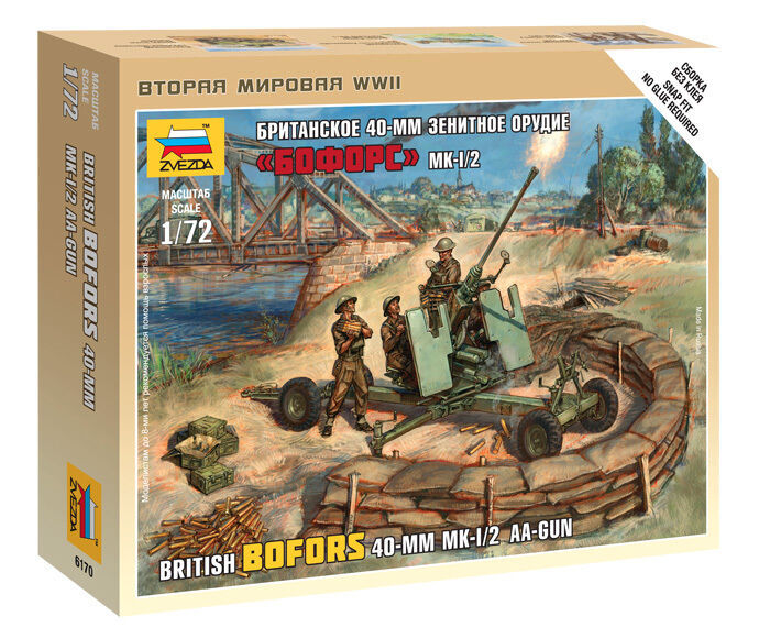 Zvezda 1/72 British Bofors 40mm Mk-2 AA-Gun Plastic Model Kit