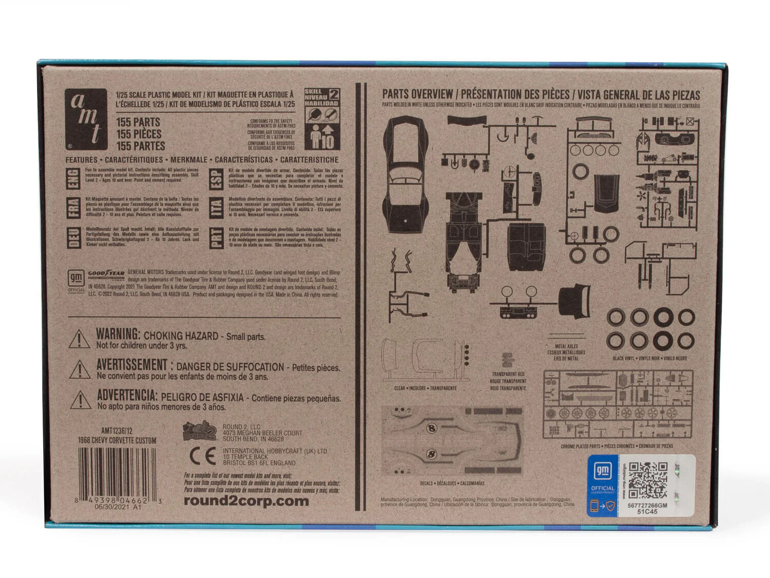 CUSTOM CLASSIC: AMT's 1/25 scale 1968 Chevy Corvette Custom is great project for any experienced modeler who is a fan of vintage custom cars. This kit include many custom parts to build the Corvette of your dreams.