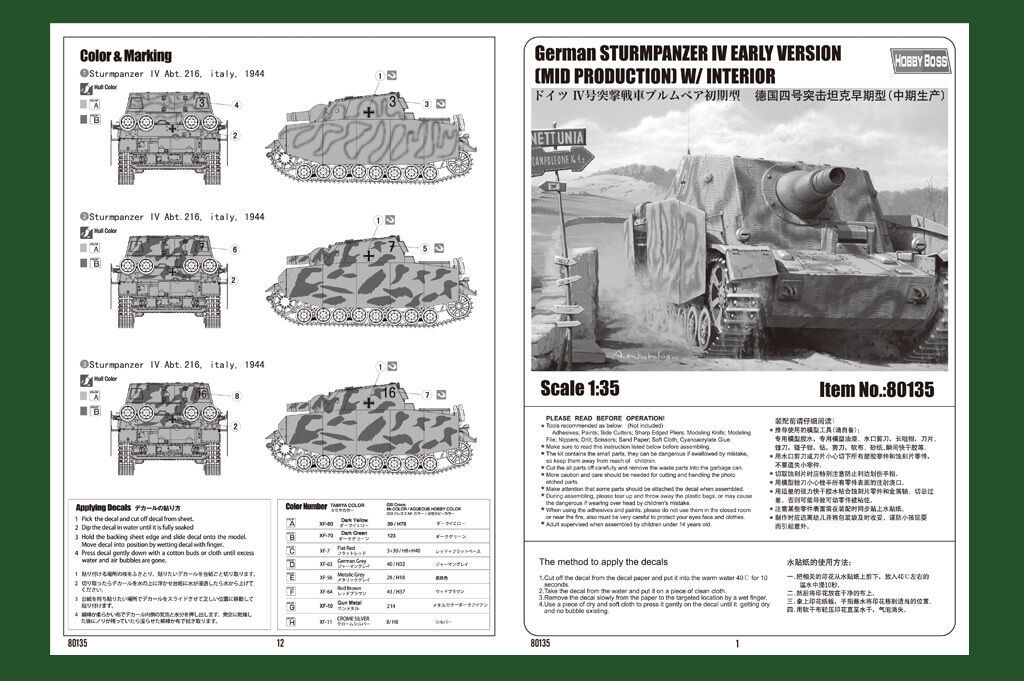 Enquire about " Hobbyboss 1/35 german sturmpanzer iv early (mid production) w/ interior plastic model kit [80135]"